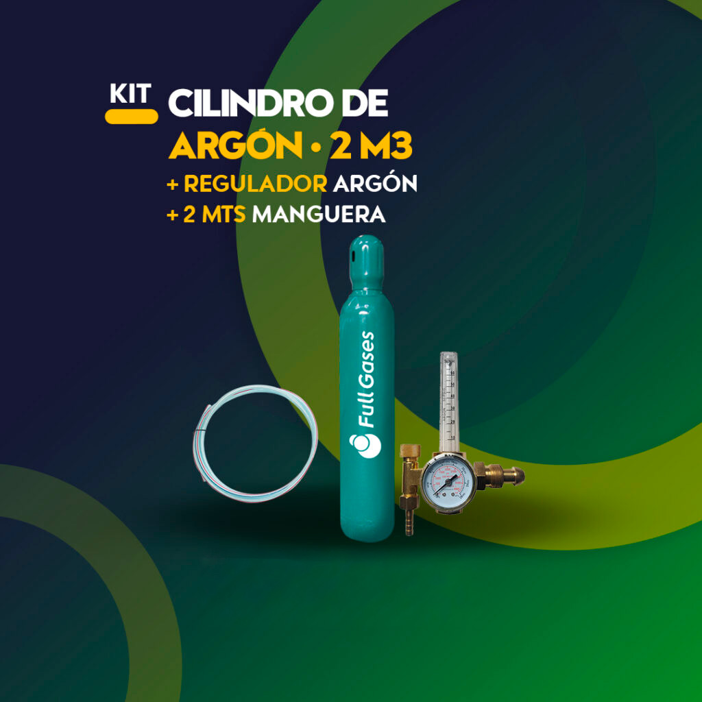 Cilindro nuevo de capacidad 2 metros cúbicos, Argón (para proceso TIG), PH al día, válvula CGA 580.